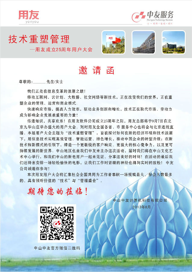 技术重塑管理——用友成立25周年用户大会(中山中友分会场)