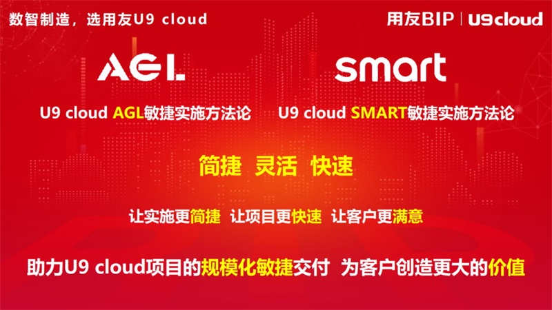 用友U9 cloud首席实施专家和实施总监杨运良说,U9 cloud敏捷实施方法论在多年应用实践的基础上,引入了敏捷的理念,进行了运化,使得项目的实施如虎添翼,正如诞生在21世纪之初的敏捷开发那样,掀起了U9 cloud敏捷实施、快速交付的浪潮,开启了U9 cloud敏捷云端实施新时代。