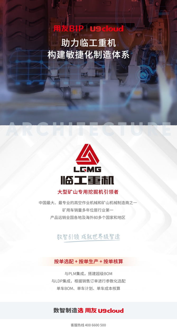 在整车行业,U9 cloud 让临工集团的个性化定制成为可能。