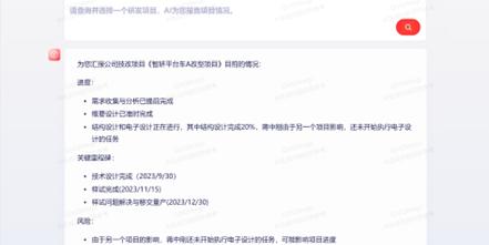项目管理是研发流程的核心枢纽,关乎产品创新的成败。研发项目的运行需要严密的监控。智石开PLM的“PM小秘”宛如一位贴心的智能助手,主动采集项目关键数据,运用大模型强大的生成能力,自动绘制可视化图表,生成详尽的项目阶段报告,并精准进行问题分析与风险预警。项目经理借此可实时掌控项目动态,提前化解潜在危机,确保项目稳步推进。
